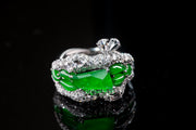 Natural Burmese Green Jadeite And Diamond Ring 帝王綠翡翠及鑽石戒指