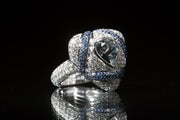 We made the ring with the center piece of aquamarine . Setting with round brilliant cut diamond and blue sapphire . Giving a contrast of navy blue & baby blue