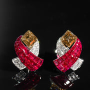 Natural Brown Asscher Cut Diamond & invisible setting 隱密切割紅寶石及鑽石耳環