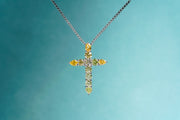 Natural Green & Yellow Colour Diamond Pendant in 18Karat Gold 天然綠及黃色鑽石十字架吊墜